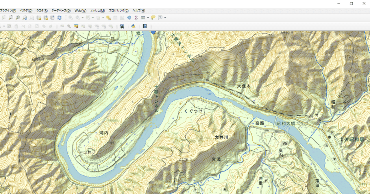 QGISを開いて、地図に展開した中の「N03-21_210101.shp」というファイルをドラッグ&ドロップします。